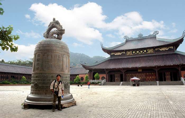 The new Bai Dinh Pagoda is also famous for many large-scale items in. The largest bronze bell in Vietnam has a height of 5.5 m, a diameter of 3.5 m and has a volume of up to 36 tons. This copper bell is carved with many different ancient symbols and Chinese characters such as vivid dragon images.