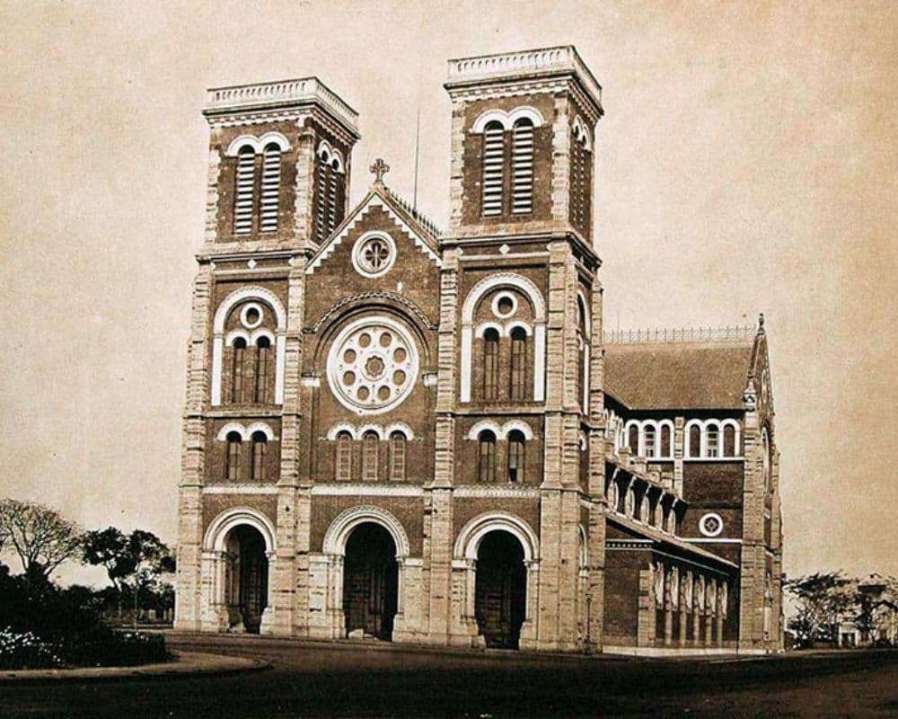 Back in the late 19th century, when the French conquered Vietnam, the French government ordered the construction of a large church that served as a place of worship and community services for French colonists. In 1863, the church’s construction was first started on the bank of the Charner canal (Kinh Lon). Two years later, the wooden building was completed and named “Saigon Church”; however, it was quickly damaged by termites.