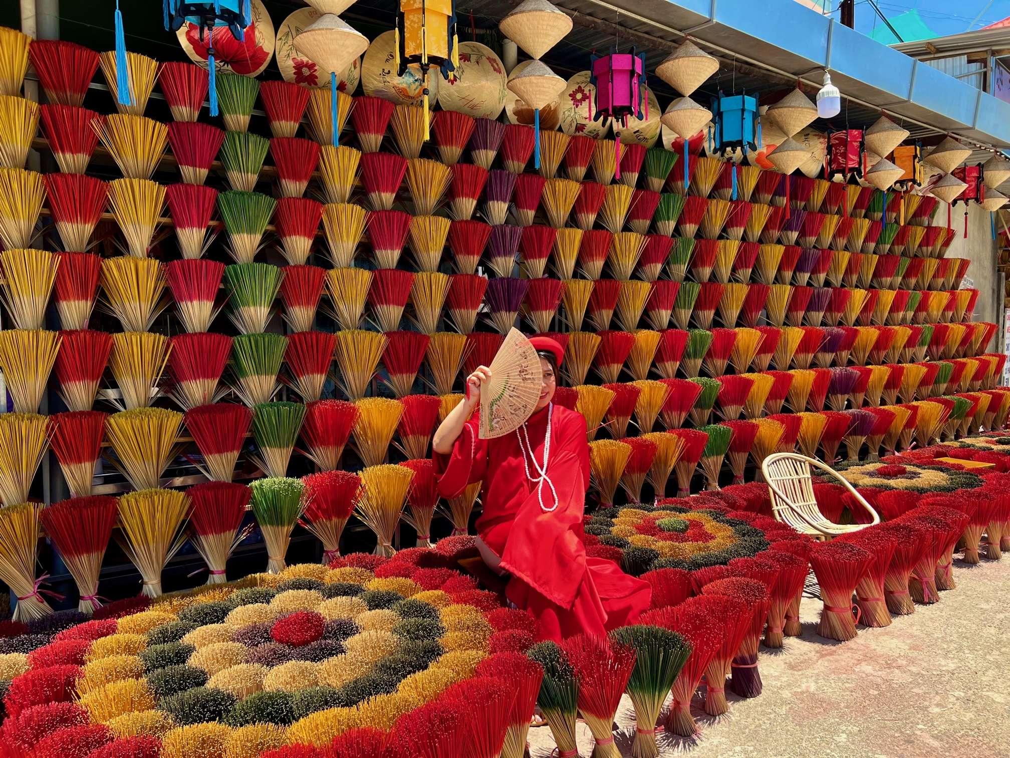 Visit the enchanting Thuy Xuan Village in its dry season, from March to August, when the hot climate is ideal for artisans to sun-dry the hand-rolled incense sticks. The experience turns the village into a magic show, where thousands of incense sticks lined up in hues of red, yellow, purple, and green create a wonderful and colorful view.